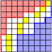 This lower boundary can be visualised like so, where the blue entries are smaller than :