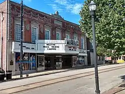 The Media Theatre opened its doors on August 29, 1927, as a cinema decorated in the English Renaissance style. Real estate entrepreneur Walter Strine Sr. purchased the building in the 1970s and leased it to a company that operated it as a movie theater. He closed the theatre in 1990, and began repair work in 1992 to transform it into a performing arts center. The theatre opened on February 8 1994, with My Fair Lady as its first production.[2] For the building's 70th anniversary in 1997, the Media Theatre hosted Roaring Twenties and 1930s jazz music and productions. SEPTA ran a decorated trolley car to honor the run of the theatre.[3] Strine sold the theatre to the Borough of Media in 2000. The entire enterprise was renamed “Media Music Theatre Company” in 2005. Media Theatre celebrated its 25th anniversary in 2019 with a gala and benefit.[4] In December 2019, the Media Theatre hosted a memorial for Broadway actress and singer Ann Crumb, who frequently performed at the theatre and considered it a "second home."[5]