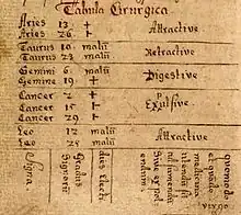 This table, from an 18th-century Icelandic manuscript, links astrological dates with the preparation of medicine.
