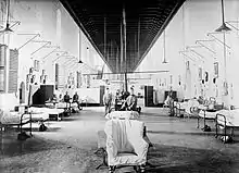 The new General Hospital now became a Station Hospital to accommodate the wounded British soldiers being brought in by Hospital ships. This was done due to its strategic position overlooking the harbour. This meant that the seriously injured troops could be easily and quickly transported there.[10] The hospital saw much use mainly during the Napoleonic Wars, the Crimean War and the First World War. In effect by World War I Malta was known as the 'Nurse of the Mediterranean'. Between 1863 and 1865 more alterations were made to improve the building.