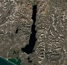 There are no permanent settlements on the shores of the lake. The nearest inhabited place is Enmelen, located 40 km (25 mi) to the southeast.[2][3]