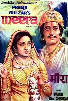 Meera (Hindi: मीरा) is a 1979 Hindi language film by Gulzar. The film is based on the life of Meera, a Hindu saint-poet who renounced princely comforts in pursuit of her love for Lord Krishna. The film portrays the life and times of Meera from a historical perspective rather than a mythological one. The soundtrack by Pt. Ravi Shankar features the award-winning playback singer Vani Jairam.