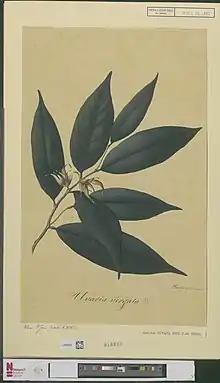 Meiogyne virgata is an Asian tree species in the family Annonaceae and tribe Miliuseae. Originally described in 1825 as Unona virgata, it was later placed as the type species of the genus Meiogyne by Friedrich Anton Wilhelm Miquel.[1] This species has been recorded from: Borneo, Java, Malaya, Philippines, Thailand and Vietnam[2] (where it is called thiều nhụy nhẵn).