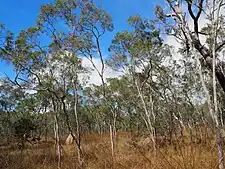 This melaleuca occurs in the Borroloola district in the Northern Territory, Cape York Peninsula and southern parts of Papua New Guinea.[2] It grows in seasonal swamps and along creeks in a variety of soils.[2]