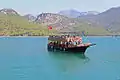 From there, the river flows south over conglomerated strata for about 90 km, descending through a series of canyons.[2] Finally, it washes over the Manavgat Waterfall and through the coastal plain and into the Mediterranean Sea. There are many caves in the river watershed area, the most interesting being the Altınbeşik cave.[4]