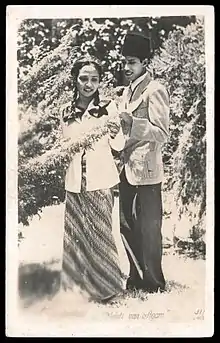 The black-and-white film starred S. Soekarti, A.B. Rachman, R. Abdullah, S. Thalib, N. Ismail, Rochani, Lena, and M. Sani.[2] Soekarti had no previous acting experience, whereas her on-screen romantic partner A.B. Rachman had previously acted in theatre. The marketing for Melati van Agam only focused on Soekarti's background, underplaying Rachman's.[3] Cinematography was handled by I. Ch. Chua, whilst kroncong musician M. Sardi provided the music.[4]