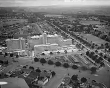 ![]() Aerial view of the Royal Melbourne Hospital (centre) with the old Royal Dental Hospital in foreground | |||||||||||