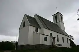 Melbu Church (Norwegian: Melbu kirke) is a parish church of the Church of Norway in Hadsel Municipality in Nordland county, Norway. It is located in the village of Melbu on the island of Hadseløya. It is one of the churches for the Melbu parish which is part of the Vesterålen prosti (deanery) in the Diocese of Sør-Hålogaland. The white, wooden church was built in a long church style in 1938 using plans drawn up by the architect Harald Sund. The church seats about 250 people.[1][2][3]