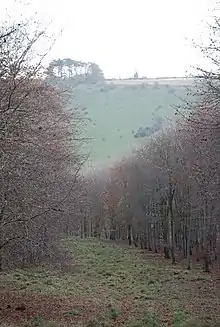 The chalk grassland here supports large butterfly populations, including very large numbers of Chalkhill Blue, and a colony of Silver-spotted Skipper.