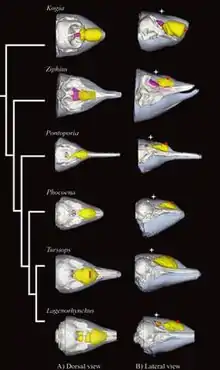 - 1 2 3 Cranford, Ted W.; Amundin, Mats; Norris, Kenneth S. (June 1996). "Functional morphology and homology in the odontocete nasal complex: Implications for sound generation". Journal of Morphology. 228 (3): 223–285. doi:10.1002/(SICI)1097-4687(199606)228:3<223::AID-JMOR1>3.0.CO;2-3. PMID 8622183. S2CID 35653583.