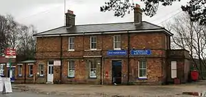 The station closed to passengers on 2 May 1955;[2] the goods yard closed on 1 June 1972, although private sidings remained open for domestic coal traffic[7] and roadstone between 1972 and 1976. During this time a small Ruston & Hornsby diesel shunter was based at the sidings.[6] All freight traffic ceased in the early 1980s but after local campaigning the station was reopened for passengers on 3 September 1984.[2]