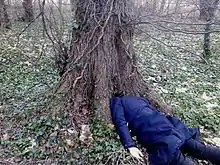 In 2013 Menno Veldhuis turns also to photography and creates a series of around 150 selfies „Back to Nature“, in which he shows his tendency to self-mockery.