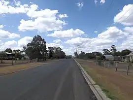 Meringandan West is on the Darling Downs in southern Queensland. The majority of the eastern boundary is aligned with Meringandan Creek, separating the locality from Meringandan.[4] The creek also formed the boundary between the Shire of Crows Nest and the Shire of Rosalie) with Meringandan West falling under the jurisdiction of the Shire of Rosalie. In 2008, both Meringandan and Meringandan West both came under the jurisdiction of the newly created Toowoomba Region.[2][5]