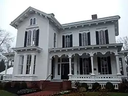 Merrimon-Wynne House, also known as the Merrimon House and Wynne Hall, is a historic home located at Raleigh, Wake County, North Carolina. The house was built about 1875, and is a two-story, four-bay, Italianate style frame dwelling with a cross-gabled roof and somewhat irregular massing. It is sheathed in weatherboard and features a Stick Style / Eastlake movement front porch with abundant ornamentation. The house was remodeled and complementary bay windows added about 1910. The house was built by Senator Augustus Summerfield Merrimon (1830-1892).[3]