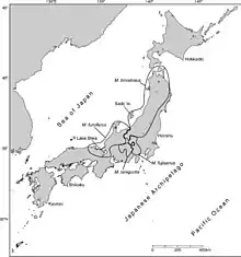 | Range of Mesechthistatus species on the Japanese islands of Honshu and Sado.[1] | |