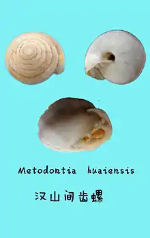 - ↑ Wu, Min; Prozorova, Larisa, A., 2006: "The landsnail genus Metodontia Moellendorff (Pulmonata: Stylommatophora: Bradybaenidae) of China." Journal of Conchology 39(2): 159-173