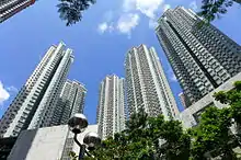 The estate is divided into three phases by the order of their development, offering a total of 6768 units.[3] Phase 1 consists of 6 blocks completed in 1996. Phase 2 consists of 11 blocks completed in 2000. Phase 3, also called The Metropolis (Chinese: 都會豪庭),[4] consists of 4 blocks completed in 2002.[5]