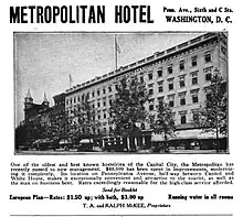 - ↑ "Metropolitan Hotel - D.C. Public Library Historic Image Collection".