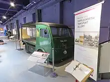 Three MetroVick milk floats have survived into preservation. All were operated by dairies in Sheffield, close to MetroVick's factory. Kelham Island Museum have an 18-22 cwt model, supplied to the Sheffield and Eccleshall Co-operative Society in 1940, and used by them until the 1990s. It was then given to the museum, who used it to move things around the museum site, prior to it becoming a static exhibit. It carries a green livery,[18] and the registration number GWJ 586.[19] A second Sheffield and Eccleshall Co-op vehicle is displayed at the South Yorkshire Transport Museum in Aldwarke, Rotherham. It dates from 1940, and carries the registration number GWE 606.[20] The third is another 18-22 cwt model, supplied as part of the first batch of 36 electric vehicles bought by the Brightside and Carbrook Co-operative Society in 1938. It carries the registration number FWB 784, and remained in commercial service until the early 1970s. After withdrawal, it was donated to an enthusiast in Sheffield and spent some time at the Sheffield Bus Museum, before moving to The Transport Museum, Wythall in 1997. Major restoration work is required, but meanwhile it is on public display in its unrestored state.[5]
