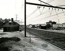 Metuchen station opened on July 11, 1836 with the completion of the New Jersey Railroad to East Brunswick (location of modern-day Highland Park). The railroad built a station depot at Main Street by 1850. When the Lehigh Valley Railroad opened their line in the 1870s, the Pennsylvania Railroad moved Metuchen station to the Lake Avenue crossing to provide connection to the new railroad. The railroad moved Metuchen station one last time, to the current location in 1888.[8][9] A secondary station in Metuchen existed from 1879 to 1911 known as Robinvale.[10][11] Robinvale station burned twice: once on February 28, 1915,[11] and once on March 27, 1915.[12] Amtrak serviced Metuchen station from its inception on May 1, 1971 until October 26, 1975.[6][13]