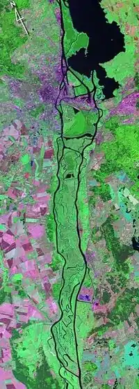 Międzyodrze is an area in Poland located in the Lower Odra Valley between two branches of the Oder River: West Oder and East Oder, a segment from the village Widuchowa to Iński Nurt channel. Międzyodrze area also includes islands located between the Oder, its anabranch Cegielinka and Dąbie Lake, as well as part of Szczecin.