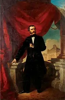 Anastasijević was called the “Prince of Danube” or “Danube Rothschild” for his wealth and business skills.[2] Miša Anastasijević married his daughter Sara (Sarka) to George, a Prince from the ruling Karađorđević family and built the most impressive building in the city (Captain Miša's Mansion), which was supposed to be the new court, although this plan failed. The building has hosted some of the most important educational and cultural institutions of the Principality of Serbia including the Belgrade Higher School, which became the University of Belgrade.[7] Occasionally, its gala hall has been used for the meetings of the National Assembly (1864–1875) and Senate (1901–1903). Today, it is the seat of the Rectorate of the University of Belgrade.