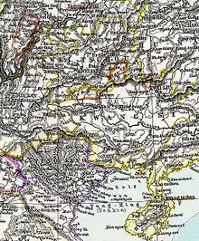 Detail from Stielers Hand-Atlas, 1891, showing a "Miao-tse" enclave between Guiyang and Guilin. The enclave corresponds to modern Congjiang and Rongjiang counties.