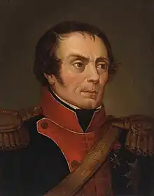 During the Napoleon's invasion of Russia in 1812, Tyszkiewicz supported Napoleon in hopes of reestablishing the old Grand Duchy of Lithuania. On July 5, 1812, using his own funds, he began forming the 17th Lithuanian Uhlan Regiment, with his own initiative and money.[2] In recognition, Napoleon named Tyszkiewicz the regimental commander with the rank of colonel and Chevalier of the Legion of Honour.[3] The regiment was attached to the X Corps of the Grande Armée. Tyszkiewicz became ill and did not participate in action; the command was taken over by major Kozlovsky.[4] In 1904, his great-grandson published Histoire du 17me Régt de cavalerie Polonaise Lanciers du Cte Michel Tyszkiewicz 1812-1815 about the regiment.
