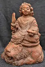 ![]() Michael Hofmann, "Akiba" (2010), calligraphy by Yoko Nishina "The Father lures his children from a house burning with the fires of greed, hatred, and delusion, and into a world of spiritual wealth and freedom" Lotus Sutra | ![]() Michael Hofmann, "Embrace" (1998) | ![]() Michael Hofmann, "Fox Wedding," oil on paper (2005) | ![]() Michael Hofmann, "From Mother's window - San Francisco - Embraced in mist" (1988) poem and calligraphy by Jikihara Gyokusei | ![]() Michael Hofmann, "Manjushri" (2014), ceramic, fired at Joel Bennett Studio, Forestville, CA |
