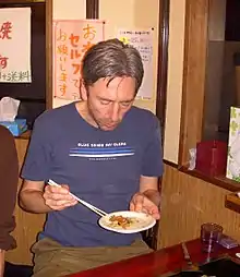 Michael Lückner in a pancake restaurant after a live show in Hiroshima, Japan, 2007