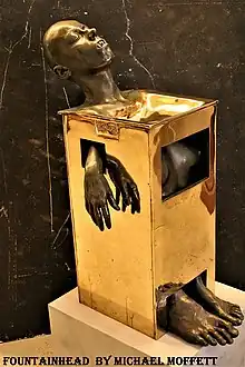 After being commissioned to create a bronze drinking fountain for the City of Cocoa, Florida, and the local art community, Moffett created the sculpture titled Fountainhead.[1] The drinking fountain included giant, mismatched feet, dangling hands and breasts, with a water spout spewing from its vampire-fang, tipped lips.[1] Upon its unveiling, the mayor of Cocoa quickly decommissioned [9] and banned the piece from the city. It is currently on tour.[10]