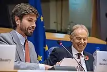 Michelangelo Baracchi Bonvicini and Tony Blair at the European Parliament in November 2018 for the presentation of the "AI4 People's Ethical Framework for a good AI Society"