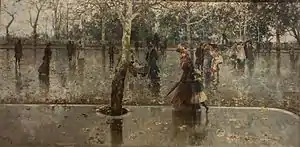 In his last years his health became very bad and his eyesight worsened to such extent that he was no longer able to paint.[4] Michele Catti died on July 4, 1914, in Palermo.[2] Apart from his works in Palermo's Galleria d'Arte Moderna, the Fondazione Sicilia at Villa Zito and numerous galleries, most of Catti's works remain in private collections, primarily in Palermo, Sicily - his homeland, as Prince Umberto of Savoy said in 1875.[3]