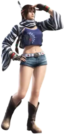 She appears as a playable character in Tekken Tag Tournament and is one of the console-exclusive returning characters via free downloadable content (DLC) in Tekken Tag Tournament 2 (first introduced as pre-order bonus from GameStop[10]).[11][12]