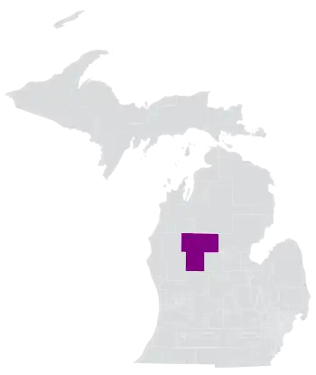 Michigan's 100th House of Representatives district (also referred to as Michigan's 100th House district) is a legislative district within the Michigan House of Representatives located in parts of Clare and Lake counties, as well as all of Mecosta and Osceola counties.[3] The district was created in 1965, when the Michigan House of Representatives district naming scheme changed from a county-based system to a numerical one.[4]