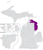 Michigan's 106th House of Representatives district (also referred to as Michigan's 106th House district) is a legislative district within the Michigan House of Representatives located in parts of Cheboygan and Oscoda counties, as well as all of Alcona, Alpena, Montmorency, and Presque Isle counties.[3] The district was created in 1965, when the Michigan House of Representatives district naming scheme changed from a county-based system to a numerical one.[4]