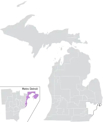 The district overlapped with Michigan's 8th, 9th, 11th, and 14th congressional districts, and with the 29th, 35th, 40th, 43rd, 45th, and 46th districts of the Michigan House of Representatives.[8]