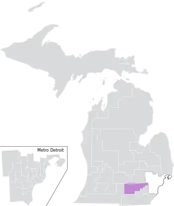 The district overlapped with Michigan's 5th, 8th, and 11th congressional districts, and with the 43rd, 44th, 46th, 48th, 50th, and 51st districts of the Michigan House of Representatives.[8]
