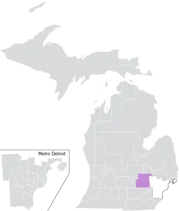The district was largely located within Michigan's 8th congressional district, also extended into the 7th and 12th districts. It overlapped with the 42nd, 47th, and 52nd districts of the Michigan House of Representatives.[7]
