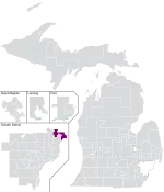 - ↑ "Population of State House District 24, Michigan". Statistical Atlas. Retrieved June 11, 2020.