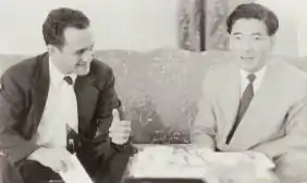 During his self-imposed exile in the early 1950s, Ngô Đình Diệm met and befriended Wesley R. Fishel, a former military language specialist with a doctorate in international relations from the University of Chicago. Fishel was "impressed [by] Diệm's anticommunist and sociopolitical reform views, and the two men corresponded frequently".[3] When Fishel was hired in 1951 as an assistant professor of political science at Michigan State University, he invited Diệm to join him.[4] Two years later, as assistant director of the university's Governmental Research Bureau, Fishel appointed Diệm as the bureau's Southeast Asian consultant.[5]