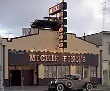 Finn promoted the club with various publicity stunts. He raced a 1927 Seagraves fire engine at the El Cajon Speedway, and he fired an old cannon after every score by the San Diego Chargers football team at all home games.[2] In the early 1970s, the Finns opened a second Mickie Finn's nightclub in Beverly Hills on Restaurant Row, in the new Los Angeles Emporium. The San Diego location closed in 1974.[2] Finn's second wife, Cathy, took over the banjo duties from 1980 on.[2]