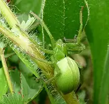 These huntsman spiders live on herbaceous vegetation.[4]