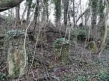 Middlewood Higher railway station; building support pillars, March 2019