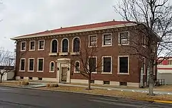 It is a two-story red brick building.[2] It was listed on the National Register of Historic Places in 1983.[1]