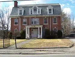The largest of the properties, Laurelhurst, was first acquired and developed as his residence by Henry Migeon, an textile manufacturer. Migeon's son Achille had the present large Shingle-style house built in the late 1890s, and retained the Olmsted Brothers to landscape the property. Achille sold the parcel just north of Laurelhurst to Thomas Bryant, who built a Colonial Revival house and also hired the Olmsted Brothers to do landscaping. The Bryant house was demolished in 1966 to make way for the nursing home. The parcel south of Laurelhurst was sold by Achille to Luther Turner, who also built a large Shingle-style house. The two houses on the west side of Migeon Avenue are elegant Colonial Revival houses, built by Harlow Pease, a local builder, and Frank Travis, president of the local water and electric companies.[2]