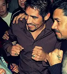In his next fight, Margarito moved up in weight class for a rematch with Daniel Santos, who possessed the WBO junior welterweight title. The fight took place on September 11, 2004 and ended in a technical decision victory for Santos after Margarito was cut over the right eye by an unintentional headbutt in round six. After round nine it was ruled Margarito could not continue, so the fight was decided on the scorecards and Santos led 86–85, 87–84 on two cards while Margarito was ahead 86–85 on the third scorecard.[23] After the loss, Margarito moved back down in weight to defend his WBO welterweight title against Sebastian Lujan on February 18, 2005. He won the fight by technical knockout in the tenth round and set up a fight against Kermit Cintron, who was in attendance for Margarito's fight with Lujan.[24] On April 23, 2005, Margarito defeated the less experienced Cintron, knocking him down four times en route to a technical knockout victory in the fifth round at Caesar's Palace in Las Vegas.[25] Margarito's next fight took place on February 18, 2006, when he defeated Manuel Gomez by technical knockout in just 74 seconds in Las Vegas.[26]