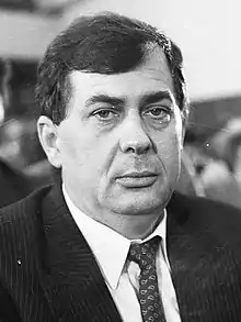 Kertes became a prominent figure when, during the anti-bureaucratic revolution in support of Milošević's politics, he initiated the protests in Bačka Palanka and led the protesters to Novi Sad, the capital of SAP Vojvodina. The event, known as the "Yogurt Revolution", led to resignation of the provincial leadership and installation of loyalists to Milošević.[12] His statement "How can you Serbs be afraid of Serbia when I, a Hungarian, am not afraid of Serbia?" made him particularly famous.[13] These activities helped his progression to Serbian presidency membership, and in 1990 he was elected to the Assembly of Serbia as a member of parliament for the Grocka—a suburb of Belgrade—although he did not live there.[7][9] In 1991, he temporarily withdrew from the public eye and, under the auspices of the State Security, on the eve of the War in Croatia, he travelled across Serb-populated areas in Croatia and Herzegovina, distributing weapons to local Serbs. In July 1991, he made another historic statement in Nikšić: "Here we will build a great Serbian state, with the border on the left shore of Neretva and Dubrovnik as the capital".[3] Subsequently, he was installed as the head of the state security department of the Federal Ministry of Interior, and as the assistant to Federal Minister of Interior Petar Gračanin (1992–93).[7] Prime Minister Milan Panić removed him from his position after an incident at the London Conference, when it was discovered that he induced Vladislav Jovanović to carry a secret listening device, and that he was listening on the other end.[3][14] He was linked to formation of Serbian paramilitary units in Croatia (especially in eastern Slavonia) and Bosnia and Herzegovina in 1992 and 1993.[13]
