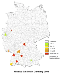 The name Mihalko, Михалко, originates from Kurzem in Jász-Kun, Hungary, ennobled by King Leopold II in 1790. The majority of the Mihalko families in the United States are located in the northeastern portion, primarily concentrated in the state of Pennsylvania.