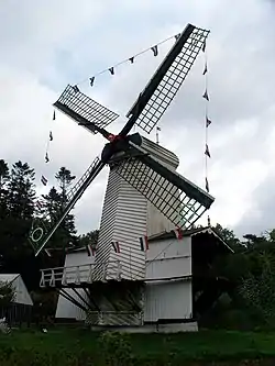 1. 1 2 "Openluchtmuseum (Spinnenwiel/Mijn Genoegen) te Arnhem" (in Dutch). De Hollandsche Molen. Archived from the original on August 8, 2014. Retrieved October 28, 2012.